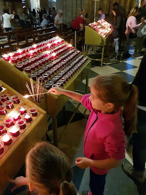 The kids were enthralled with the candles. After a brief explanation, they too wanted to offer their little prayers so a few Euros later we had some candles and we let the kids light them.
