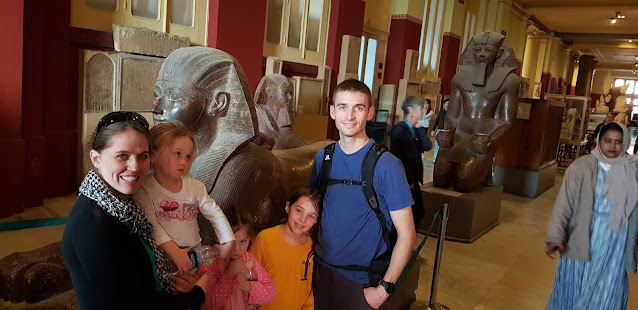 On Christmas morning, our very last gift was a puzzle to the children. They opened 5 books, and used hints to find 5 letters: Y, P, T, G, E. We let them unscramble the letters and gave them a biblical reference to EGPYT. When we announced we were going as a family to Egypt, Hazel squealed with delight, Charlotte's mouth hung open in shock and then turned to a big smile, Zachary jumped for joy, and Camille had no idea what we were talking about and continued playing with her Alphabet Robots. Two days later we were waking up at 2:30 AM to start our journey to Frankfurt and then on to Cairo (see post on Von Trapped in Austria for the middle of the trip).